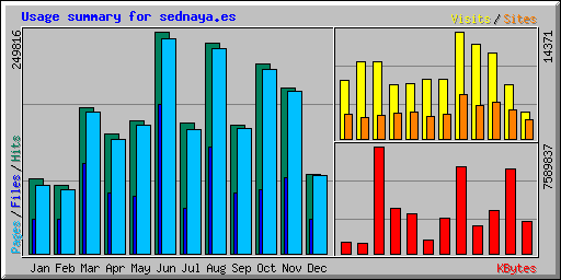 | Hits | Files | Pages | Visits | Sites | KBytes | Visits | Pages | Files | Hits | |